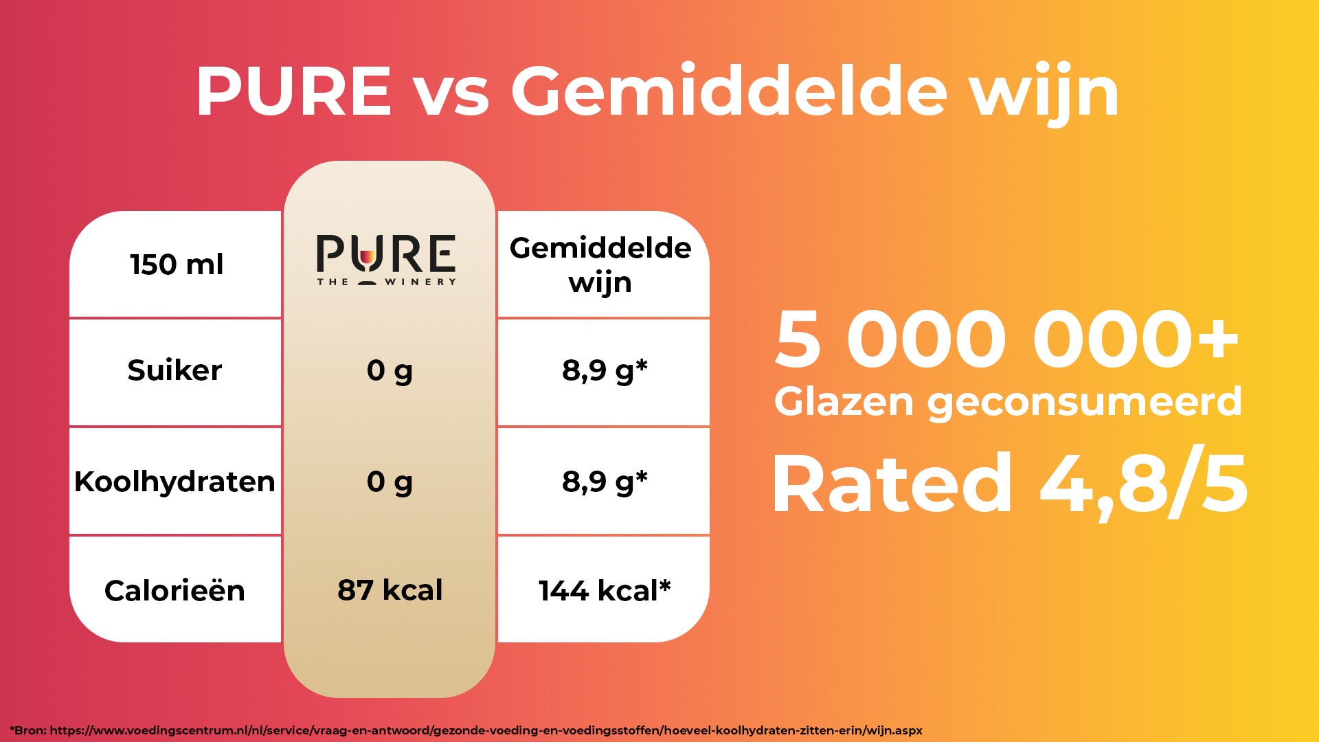 "De nieuwe wijnen van PURE The Winery bevatten geen suiker en koolhydraten en daardoor minder calorieën.