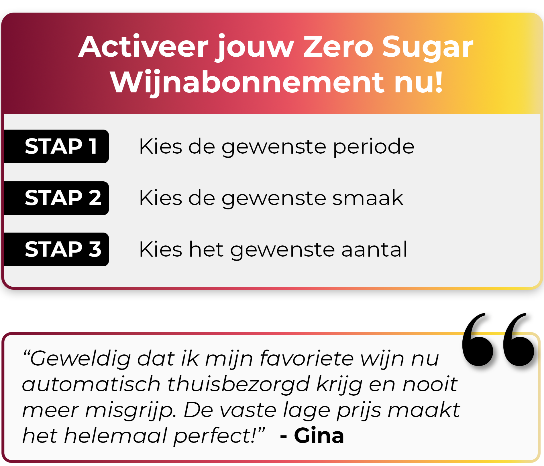 ✔️ Elke gewenste periode automatisch jouw favoriete PURE Zero Sugar wijn in huis.